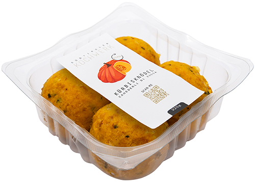 Wasser, SCAMORZA KÄSE 6% (MILCH, Salz, Milchsäurekulturen, Lab, Rauch), Zwiebel, Sonnenblumenöl, Kürbiskerne 0,6%, Salz, Schnittlauch.