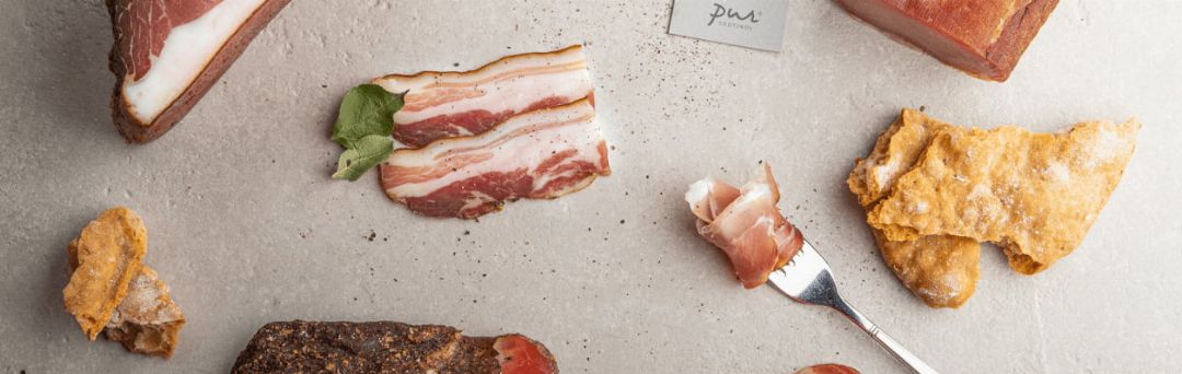 Das Beste von Rind, Schwein und Co. in Südtiroler Spitzenqualität. Unsere einheimischen Fleisch- und Wurstspezialitäten reichen von raffiniert mild bis würzig wild. Neben dem klassischen Südtiroler Speck und den knackigen Kaminwurzen, die zu keiner Marende fehlen dürfen, bieten wir auch saftigen Schinken und verschiedenste Roh- und Brühwürste. Auch Klassiker der Hausmannskost wie Selchkarre und Schweinshaxe sowie feinste Schnittware findet ihr in unserem Fleischsortiment.