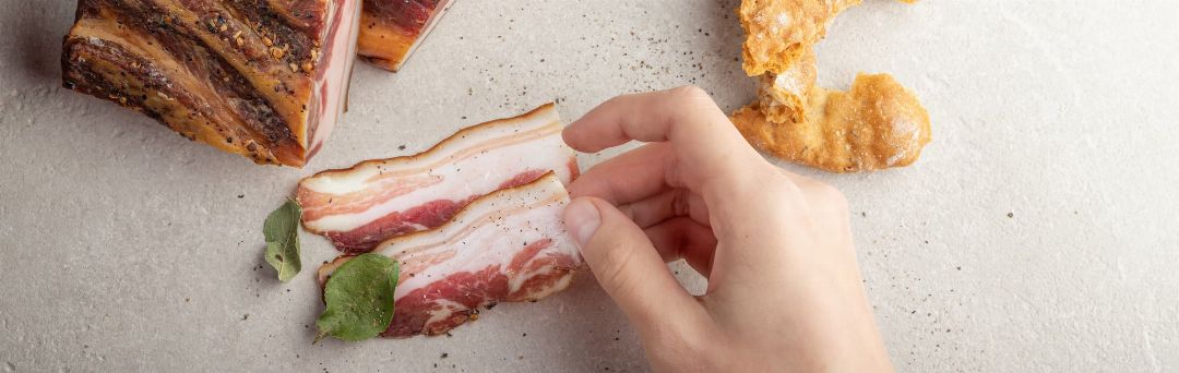 Er hat eine festere Textur als viele andere Speckarten, ist aber gleichzeitig zart und saftig, was ihn sowohl zum Kochen als auch zum direkten Verzehr ideal macht.