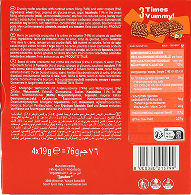 Der Loacker Break3 Haselnuss vereint drei knusprige Waffelriegel, gefüllt mit einer herrlich cremigen Haselnussfüllung, zu einem praktischen Snack für zwischendurch. Hergestellt mit italienischen Haselnüssen, entfaltet die Creme ein feines, ausgewogenes Aroma, das perfekt mit den zarten Waffelblättern harmoniert. Ohne künstliche Aromen, Farbstoffe, Konservierungsstoffe oder gehärtete Fette bleibt der Geschmack authentisch und natürlich – typisch für Loacker.