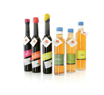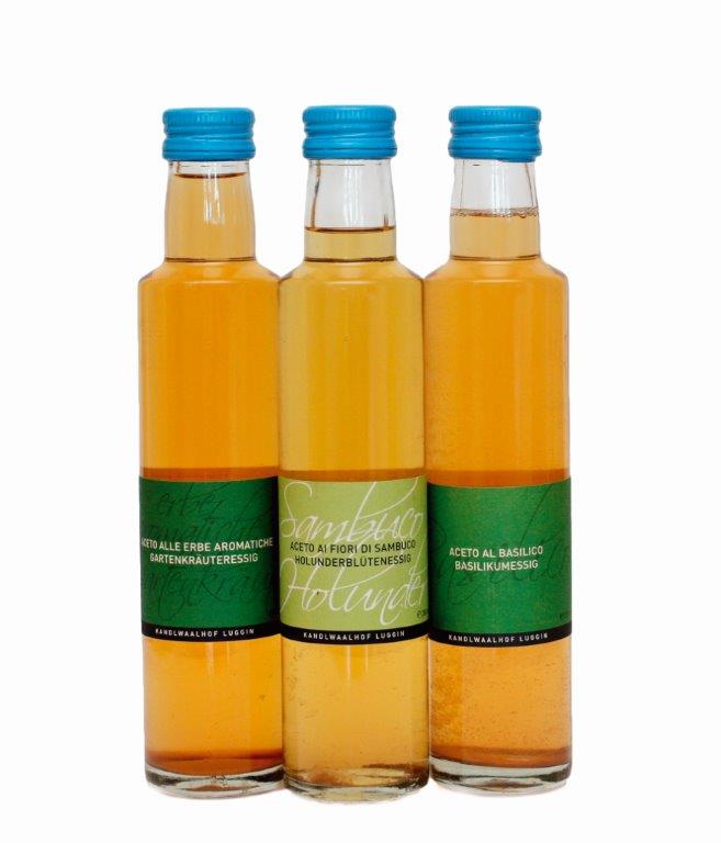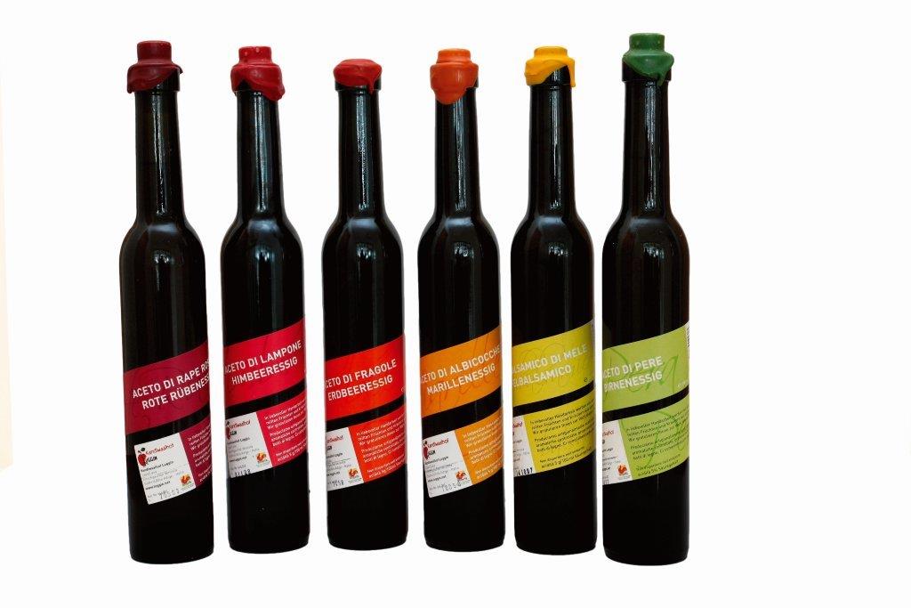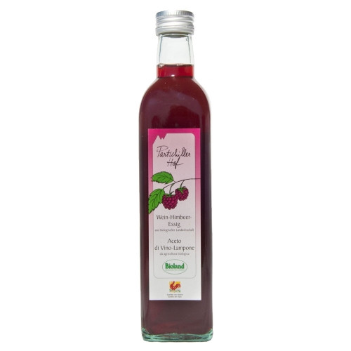 Biobauer Andreas Rungger vom Partschillerhof in Völs am Schlern auf 650 Metern Meereshöhe baut sein würziges Produkt auf der Basis von Rotweinessig aus. Entsprechend wird der Essig auf frischen Himbeeren angesetzt, wobei auf einen Liter Essig rund 200 Gramm Himbeeren kommen. Das Ergebnis ist ein feiner Wein-Himbeeressig aus biologischer Landwirtschaft, der vorzüglich zur Verfeinerung von Salaten und kalten Vorspeisen passt.