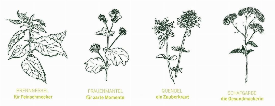 Die Vitalpina Hotels Südtirol haben aus diesem Reichtum vier heimische Bergkräuter ausgewählt, auf die sie für ein naturnahes Vitalpina Erlebnis besonderes Augenmerk legen: Brennnessel, Quendel (Wiesenthymian), Frauenmantel und Schafgarbe.