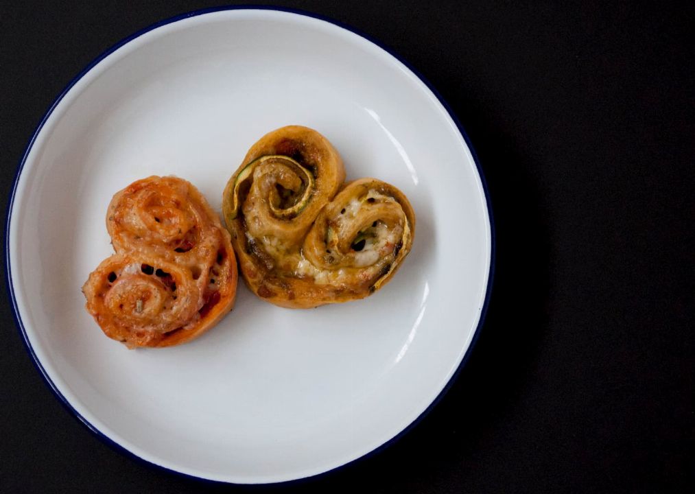 Den Ofen auf 180-200°C Ober- und Unterhitze vorheizen. Mehl, Salz, Rosmarin und Paprikapulver in eine Schüssel geben und kurz durchmischen. Die Hefe mit dem Zucker in der lauwarmen Milch auflösen und mit dem Eidotter verrühren. Die Milchmischung zusammen mit der Butter zur Mehlmischung geben und alles so lange kneten bis ein glatter Teig entsteht. Den Teig zu einer Kugel formen und 30 min an einem warmen Ort ruhen lassen. In der Zwischenzeit die Zutaten für den Belag vorbereiten bzw. fein schneiden. Anschließend den Teig mit einem Nudelholz dünn ausrollen und nach Wahl belegen. Den belegten Teig an beiden langen Seiten bis zur Mitte einrollten und in ca. 2 cm dicke Scheiben schneiden. Die Herzen nun auf ein mit Backpapier ausgelegtes Backblech legen, und die Spitze unten nachformen. Die Herzen nun für ca. 20 Minuten im vorgeheizten Backofen backen.