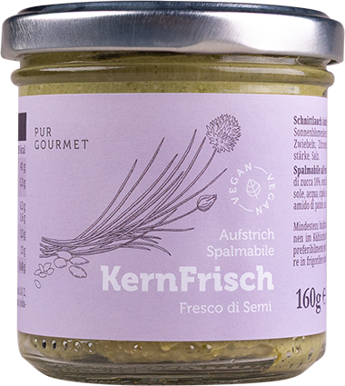 Dentro ad “Fresco di semi” c’è tutto ciò che il suo nome promette: una fresca delizia semplice e genuina! I semi di girasole e di zucca regalano al pesto all’erba cipollina una nota croccante e intensa, che si sposa con cipolle e spezie per dare vita a una crema dal gusto pieno e deciso. Ottima sul pane fresco, come dip o per insaporire piatti salati. “Armonia di semi” è la scelta giusta ogni volta che vuoi un pizzico in più di carattere e aroma.