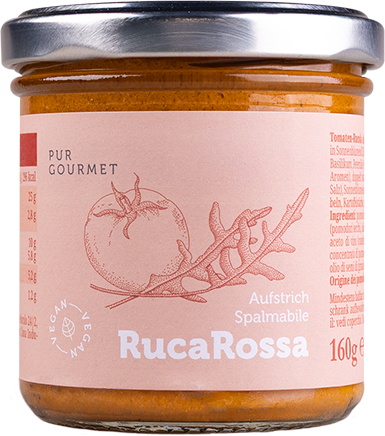 Che cosa è rossa e deliziosa? La rucola! Sì, proprio così – quando il suo gusto leggermente piccante e amarognolo incontra la dolcezza succosa dei pomodori maturati al sole, nasce un connubio perfetto. Spalmare l’estate mediterranea sul pane non è mai stato così facile! Ruca Rossa accompagna ogni aperitivo e porta un tocco di sapore in più ai tuoi piatti preferiti.