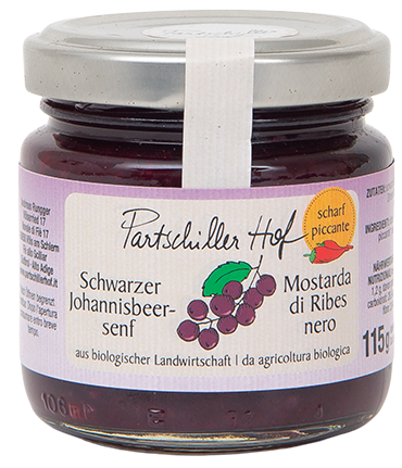 Un’esplosione fruttata e speziata! La mostarda di ribes nero bio di Partschillerhof ti incanterà con il suo sapore irresistibile. La mostarda a base di ribes nero bio, semi di senape macinati, peperoncino e succo di limone è un vero e proprio successo aromatico. Che si tratti di un piatto di formaggi, di una tradizionale Marenda altoatesina o di una semplice salsa, l'aromatica mostarda di ribes nero bio aggiunge un tocco colorato e gustoso in più ai tuoi piatti!