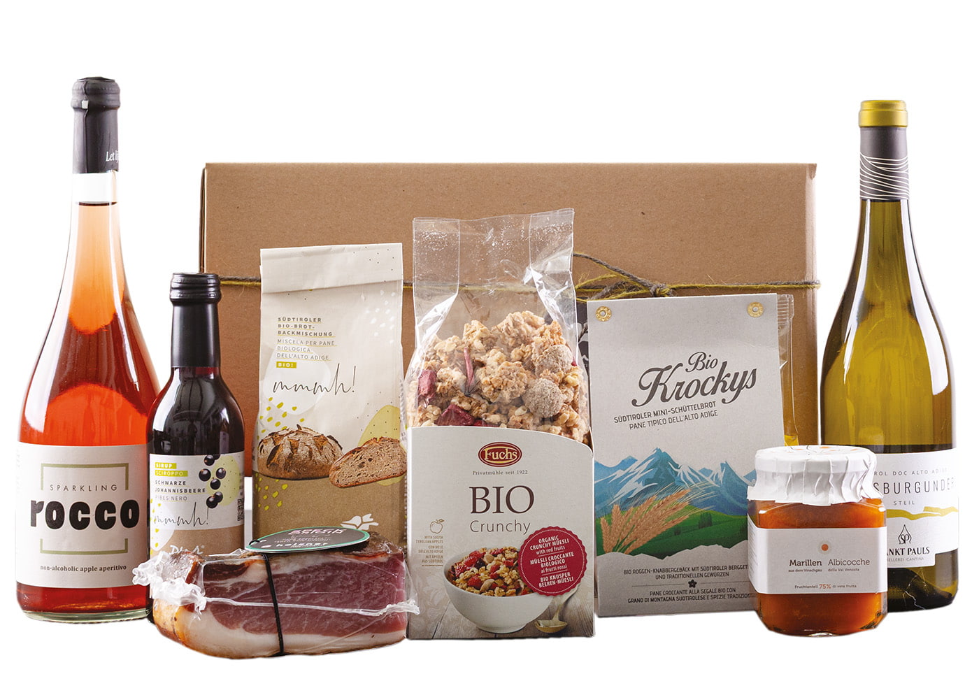Scopri il nostro pacchetto bestseller, una selezione di prodotti pregiati per un'esperienza gastronomica unica. Gusta il delizioso speck, il pane croccante bio, il raffinato Pinot Bianco e il aperitivo analcolico alle mele, accompagnati da muesli e composta di frutta. Un perfetto mix di sapori autentici e naturali, racchiusi in una elegante confezione di cartone.