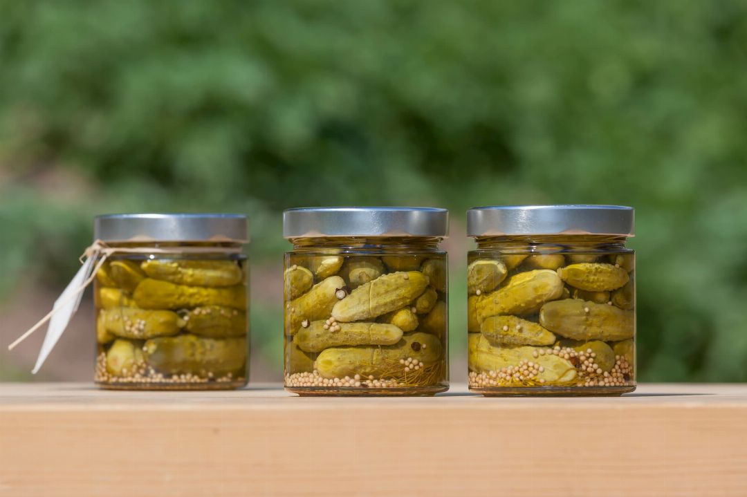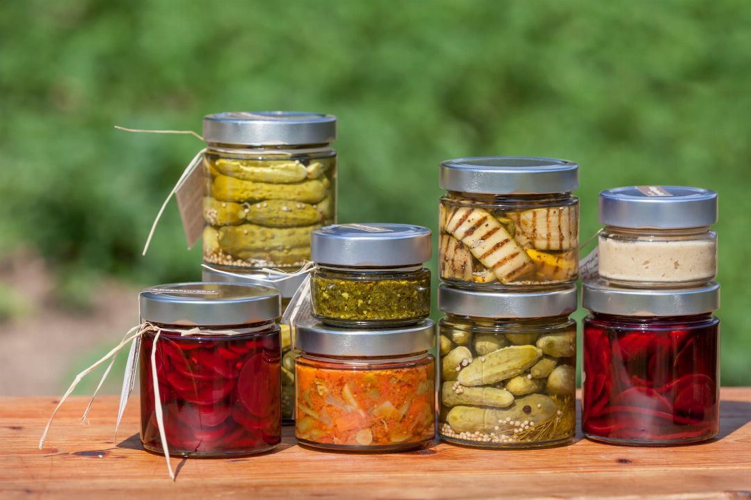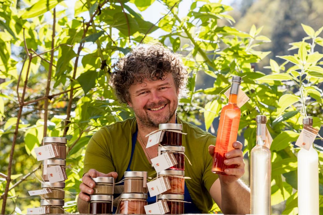 Il risultato è più che appagante. A seicento metri sul livello del mare, agevolato anche dalle superfi ci coltivate che guardano, protette, verso sud, crescono una gran varietà di frutti, bacche e verdure, che vengono trasformate in pregevoli composte, sciroppi, verdure marinate, salse e pesti. Le salse e le verdure in conserva possono essere preparate nelle varianti piccante, dolce, sottaceto o sottolio, e commercializzate anche con il marchio del Gallo Rosso. E ovviamente, senza uso di additivi di sorta.