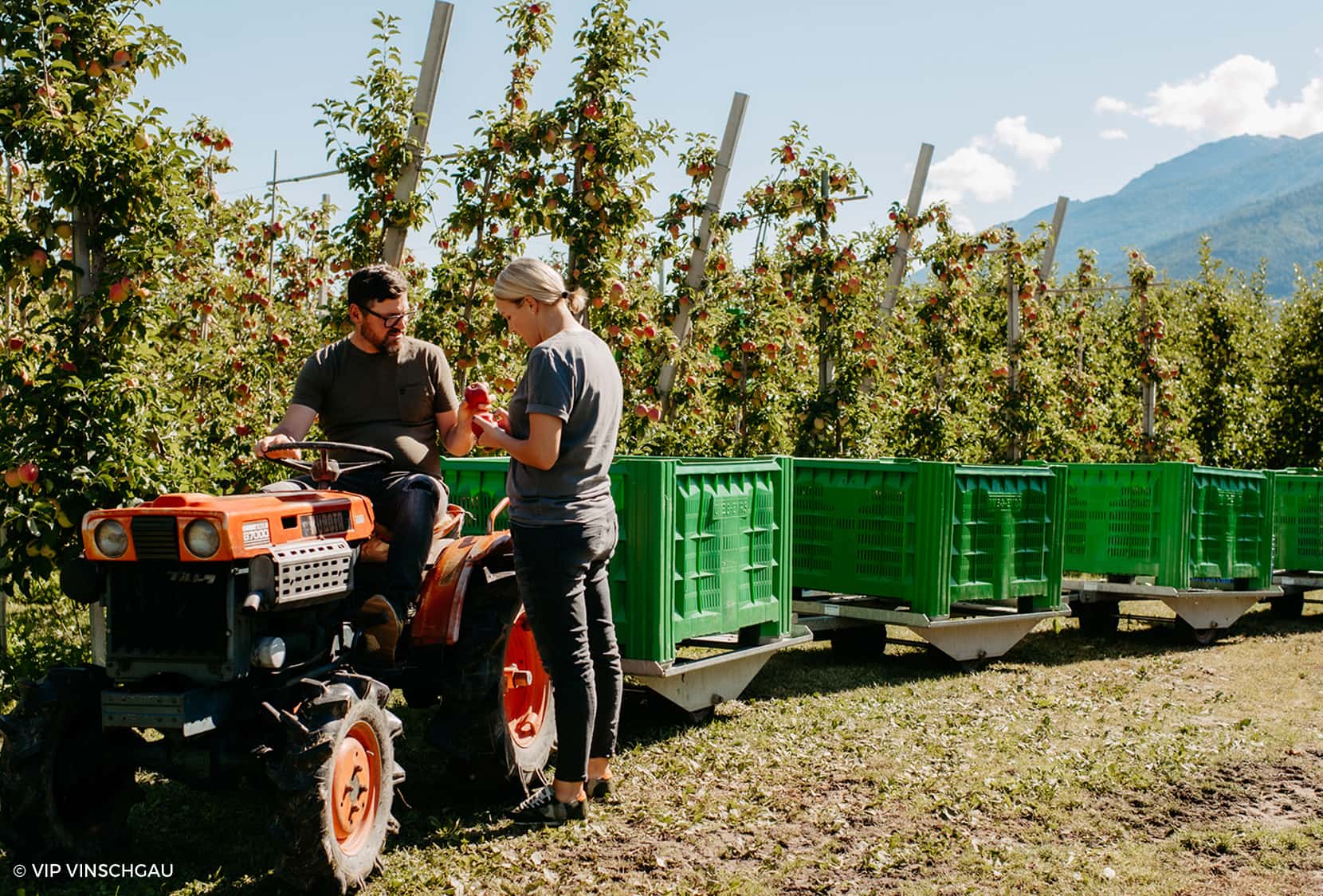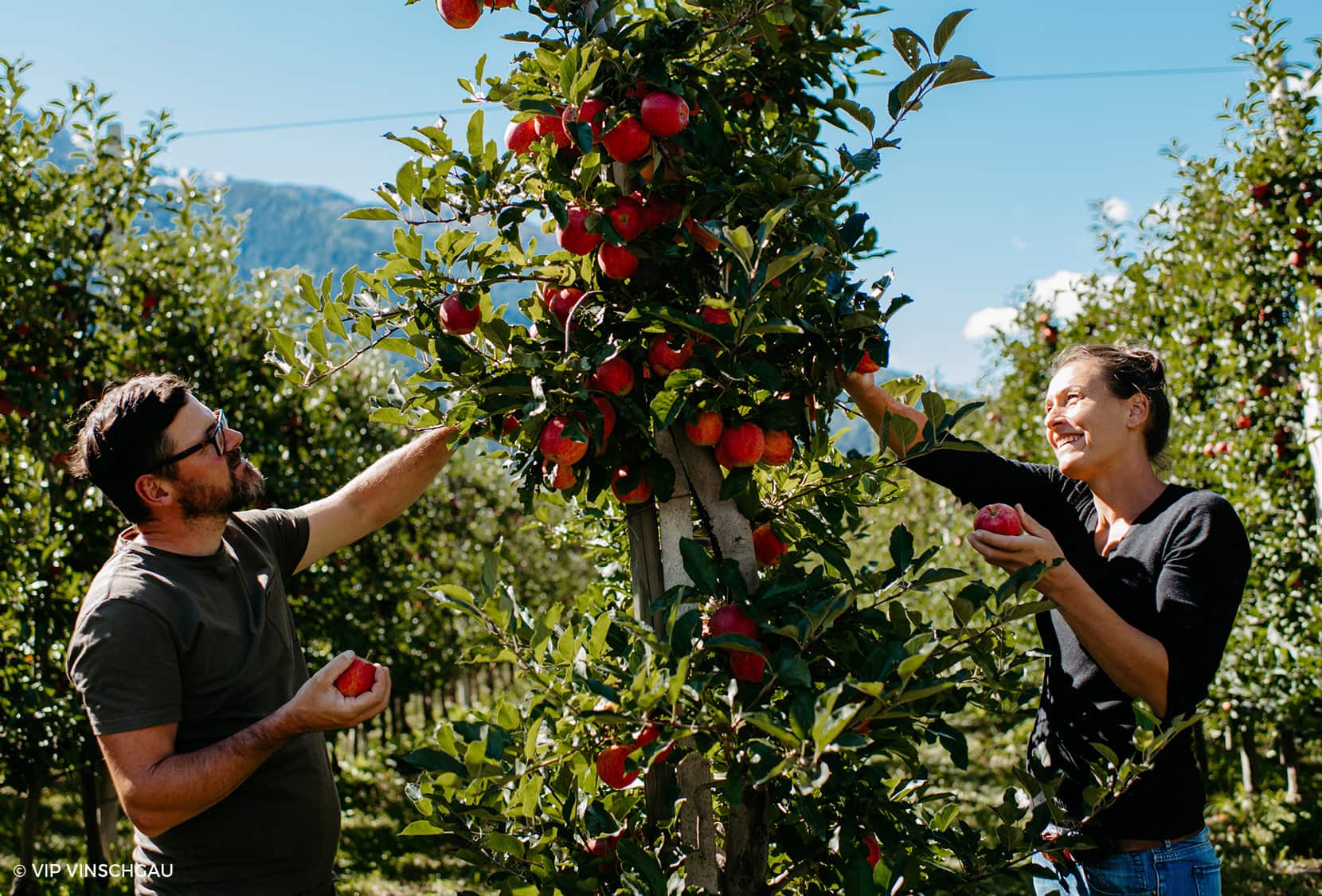 VIP non significa solo "Very Important Product" – anche se in questo caso potrebbe davvero trattarsi di una mela – ma è anche la sigla VIP della Val Venosta, nonché produttore più grande di mele d’Europa: il Consorzio dei Produttori Ortofrutticoli della Val Venosta (in ted. “Verband der Vinschgauer Produzenten für Obst und Gemüse"), che riunisce oltre 280 contadini della valle. Un’unione che rappresenta un impegno chiaro: coltivazione sostenibile, standard di qualità altissimi e una raccolta che avviene in modo speciale!